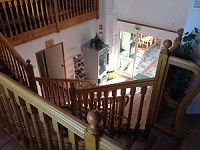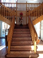 Aménagement de la rampe d’escalier, mise en place de main courante, contre marche et nez marche contrasté, interrupteurs contrastés dans les lieux communs…