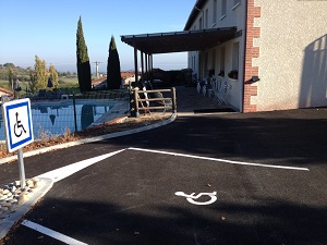 Le goudronnage des parkings et la réalisation d’une place de stationnement a été réalisé. Un cheminement a été créé afin d’accueillir un handicapé moteur à la piscine.