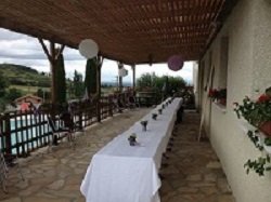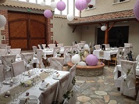Equipement : cheminée, bancs, table, chaise, Wifi. En sus : vidéoprojecteur, sonorisation, micro, éclairages.