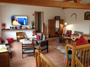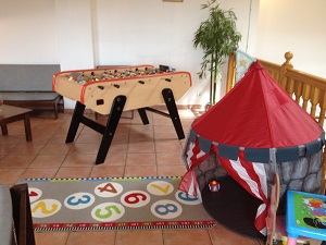 Equipement : canapés, télévision, bibliothèque, DVD, baby-foot, flipper, jeux de société, jeux d’enfants…