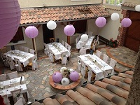 Equipement : tables, chaises, barbecue, plancha électrique.