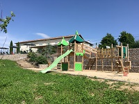 Equipement : bancs, aire de jeux, boules de pétanque.